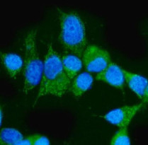 Immunofluorescence: MCF-7 stained with ARG45593 anti-A RAF antibody at 5 μg/ml dilution.