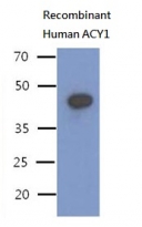 Western blot: 50 ng of Recombinant Human ACY1 stained with ARG57036 anti-ACY1 / Aminoacylase 1 antibody [1E2] at 1:1000.