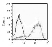 Flow Cytometry: MCF7 cells stained with ARG55149 anti-AGAP4 antibody (right histogram) at 1:25 dilution or isotype control antibody (left histogram), followed by incubation with Alexa Fluor® 488 labelled secondary antibody.