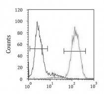 Flow Cytometry: HepG2 cells stained with ARG58176 anti-AGXT antibody (right histogram) or without primary antibody as control (left histogram), followed by incubation with FITC labelled secondary antibody.