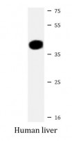 Western blot: 20 µg of Human liver lysate stained with ARG58176 anti-AGXT antibody.