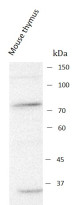 Western blot: Mouse thymus stained with ARG44336 anti-AIRE antibody at 0.5 μg/ml dilution.