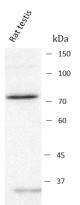Western blot: Rat testis stained with ARG44336 anti-AIRE antibody at 0.5 μg/ml dilution.