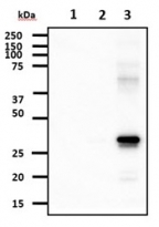 Western blot: 50 ng of 1) Recombinant Human AK1, 2) Recombinant Human AK2, 3) Recombinant Human AK3 stained with ARG56921 anti-AK3 antibody [SJB3-36] at 1:1000. .
