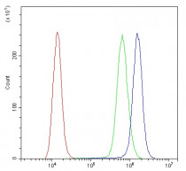 Flow Cytometry: A431 cells were blocked with 10% normal goat serum and then stained with ARG58306 anti-ALDH7A1 antibody (blue) at 1 µg/10^6 cells for 30 min at 20°C, followed by incubation with DyLight®488 labelled secondary antibody. Isotype control antibody (green) was rabbit IgG (1 µg/10^6 cells) used under the same conditions. Unlabelled sample (red) was also used as a control.