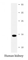 Western blot: 20 µg of Human kidney lysate stained with ARG40147 anti-ATP6V1G3 antibody at 1:2000 dilution.