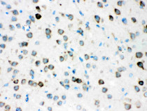 Immunohistochemistry: Paraffin-embedded Mouse brain Tissue. Antigen Retrieval: Heat mediated was performed in Citrate buffer (pH 6.0, epitope retrieval solution) for 20 min. The tissue section was blocked with 10% goat serum. The tissue section was then stained with ARG59125 anti-ATX2 antibody at 1 µg/ml, overnight at 4°C.