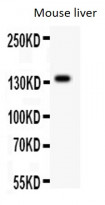 Western blot: 50 µg of samples under reducing conditions. Mouse liver tissue lysate stained with ARG59125 anti-ATX2 antibody at 0.5 µg/ml, overnight at 4°C.