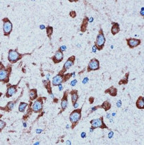 Immunohistochemistry: Paraffin-embedded Rat brain tissue stained with ARG42679 anti-Adenosine Receptor A1 antibody at 1:100 dilution.