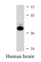 Western blot: 35 µg of Human brain lysate stained with ARG55155 anti-Aldolase C antibody at 1:1000 dilution.