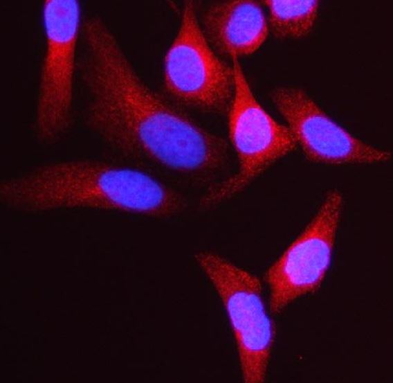 Immunofluorescence: Hela stained with ARG45779 anti-Atherin antibody at 5 μg/ml dilution.