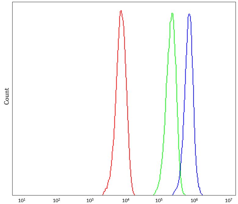 Flow Cytometry: HepG2 stained with ARG45555 anti-B7H6 antibody at 1 µg/10^6 cells dilution.