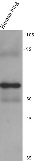 Western blot: Human lung stained with ARG46037 anti-BCAS1 / NABC1 antibody.