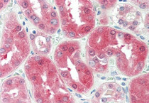 Immunohistochemistry: Paraffin-embedded Human kidney tissue. Antigen Retrieval: Steam tissue section in Citrate buffer (pH 6.0). The tissue section was stained with ARG64421 anti-BDH2 / DHRS6 antibody at 5 µg/ml dilution followed by AP-staining.