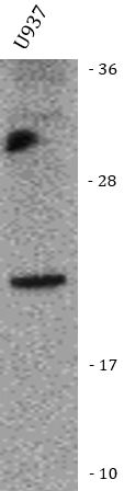 Western blot: U937 stained with ARG46040 anti-Bcl G antibody.
