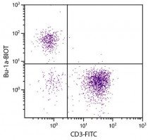 Flow Cytometry: Chicken peripheral blood lymphocytes stained with ARG21214 anti-Bu1a antibody [21-1A4] (Biotin) and ARG21151 anti-CD3 antibody [CT-3] (FITC) followed by Streptavidin (PE).