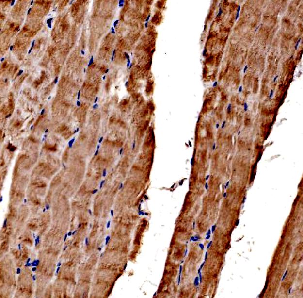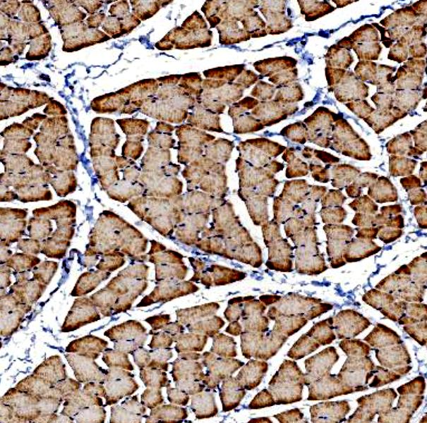 Immunohistochemistry: Rat skeletal muscle stained with ARG45193 anti-CACNA1S antibody at 1 μg/ml dilution.