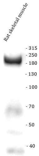 Western blot: Rat skeletal muscle stained with ARG45193 anti-CACNA1S antibody at 0.5 μg/ml dilution.