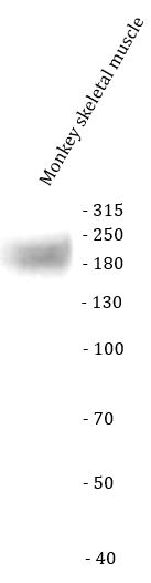 Western blot: Monkey skeletal muscle stained with ARG45193 anti-CACNA1S antibody at 0.5 μg/ml dilution.