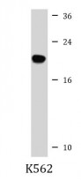 Western blot: 35 µg of K562 cell lysate stained with ARG55069 anti-CBF beta antibody.