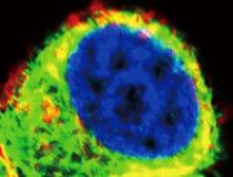 Immunofluorescence: 293 cells stained with ARG54835 anti-CBS antibody (green). Actin filaments have been labeled with Alexa Fluor 555 phalloidin (red). DAPI (blue) for nuclear staining.