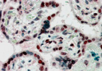 Immunohistochemistry: Paraffin embedded Human Placenta. (Steamed antigen retrieval with citrate buffer pH 6) stained with ARG63841 anti-CBX1 / HP1 beta antibody at 2.5 µg/ml dilution followed by AP-staining.