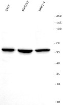 | 存放说明 | For continuous use, store undiluted antibody at 2-8°C for up to a week. For long-term storage, aliquot and store at -20°C or below. Storage in frost free freezers is not recommended. Avoid repeated freeze/thaw cycles. Suggest spin the vial prior to opening. The antibody solution should be gently mixed before use. |