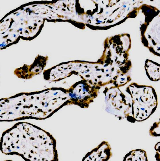 Immunohistochemistry: Human placenta stained with ARG45209 anti-CBX2 antibody at 2 μg/ml dilution.