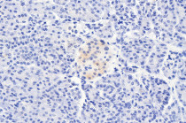 Immunohistochemistry: Paraffin-embedded Human pancreas tissue. Antigen Retrieval: Heat mediation was performed in Citrate buffer (pH 6.0). The tissue section was stained with ARG63918 anti-CCKBR antibody at 6 µg/ml dilution followed by HRP-staining.