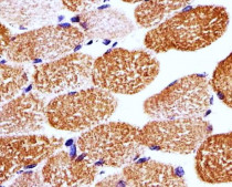 Immunohistochemistry: Paraffin-embedded Human skeletal muscle tissue stained with ARG55858 anti-CD172b / SIRPB1 antibody at 1:25 dilution.
