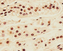Immunohistochemistry: Paraformaldehyde-fixed and paraffin-embedded Human adrenal gland blocked with 3% BSA for 0.5 hour at RT. Antigen Retrieval: Heat mediated was performed in Citrate buffer (pH 6.0). Samples were incubated with ARG59493 anti-CDC73 / Parafibromin antibody at 1:25 for 1 hours at 37°C.