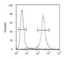 Flow Cytometry: MDA-MB-435 cells stained with ARG58419 anti-CDw198 / CCR8 antibody (right histogram) or without primary antibody as control (left histogram), followed by incubation with FITC labelled secondary antibody.