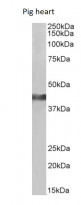 Western blot: 35µg of Pig heart lysate (in RIPA buffer) stained with ARG58438 anti-CKM / Creatine Kinase M antibody at 0.3 µg/ml dilution. Primary incubation was 1 hour. Detected by chemiluminescence.