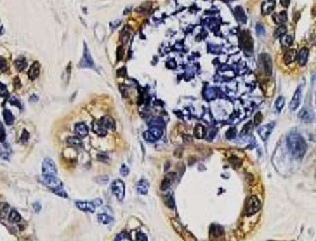 Immunohistochemistry: Human ovarian cancer stained with ARG45963 anti-CLCN2 antibody at 1:100 dilution.