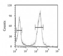 Flow Cytometry: HeLa cells stained with ARG55450 anti-CLIP1 / CLIP170 antibody (right histogram) or without primary antibody control (left histogram), followed by incubation with FITC labelled secondary antibody.