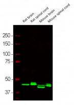 Western blot: Rat brain, Rat spinal cord, Mouse brain and Mouse spinal cord lysates stained with ARG11063 anti-CNPase antibody [1H10] at 1:2000 dilution.