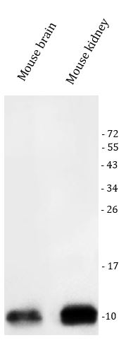 Western blot: Mouse brain and mouse kidney stained with ARG45189 anti-COX8A antibody at 0.5 μg/ml dilution.