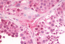 Immunohistochemistry: Formalin-fixed and paraffin-embedded Human testis tissue. Antigen Retrieval: Heat mediation. The tissue section was stained with ARG42593 anti-CRTC2 / TORC2 antibody at 10 µg/ml dilution.