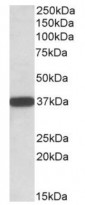 Western blot: 35 µg of Human Umbilical Cord lysate stained with ARG65672 anti-CYB5R3 antibody at 0.01 µg/ml dilution (incubate 1 hour).
