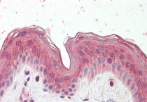 Immunohistochemistry: Paraffin-embedded Human skin tissue. Antigen Retrieval: Steam tissue section in Citrate buffer (pH 6.0). The tissue section was stained with ARG42091 anti-CYP24A1 antibody at 3.75 µg/ml dilution followed by AP-staining.