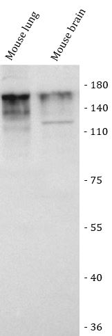 Western blot: Mouse lung and mouse brain stained with ARG45276 anti-CYTSA antibody at 0.5 μg/ml dilution.