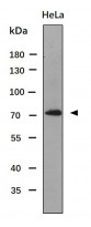 Western blot: 30 µg of HeLa whole cell lysate stained with ARG66481 anti-Caldesmon antibody at 1:1000 dilution.