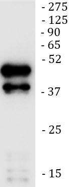 | 存放说明 | For continuous use, store undiluted antibody at 2-8°C for up to a week. For long-term storage, aliquot and store at -20°C or below. Storage in frost free freezers is not recommended. Avoid repeated freeze/thaw cycles. Suggest spin the vial prior to opening. The antibody solution should be gently mixed before use. |