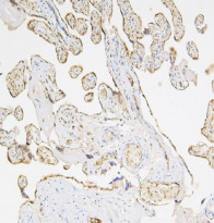 Immunohistochemistry: Paraffin-embedded Human placenta tissue. Antigen Retrieval: Heat mediation was performed in EDTA buffer (pH 8.0). The tissue section was blocked with 10% goat serum. The tissue section was then stained with ARG43230 anti-Caspase 3 antibody [8B6] at 1 µg/ml dilution, overnight at 4°C.
