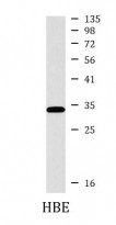 Western blot: HBE cell lysate stained with ARG43301 anti-Caspase 3 phospho (Ser150) antibody.
