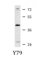 Western blot: Y79 cell lysate stained with ARG54706 anti-Caspase 9 phospho (Ser196) antibody.