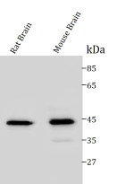 Western blot: Rat brain tissue and Mouse brain tissue stained with ARG43622 anti-Connexin 43 antibody at 1:1000 dilution