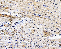 Immunohistochemistry: Formalin-fixed and paraffin-embedded Rat Cardiac Muscle tissue stained with ARG43622 anti-Connexin 43 antibody at 1:500 dilution. Antigen Retrieval: Heat mediated was performed using citrate buffer pH 6.0.
