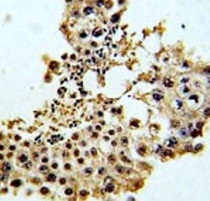 Immunohistochemistry: Formalin-fixed and paraffin-embedded Human testis stained with ARG40268 anti-Cyclin E1 antibody.