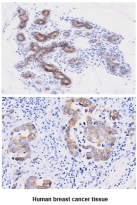 Immunohistochemistry: Paraffin embedded sections of Human breast cancer tissue stained with ARG56980 anti-Cyclophilin F antibody [1F5] at 1:50 for 2 hours at RT. Antigen Retrieval: Boil tissue section in 0.1M Sodium citrate buffer (pH 6.0) for 20 min.